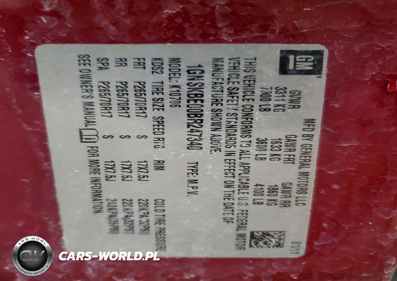 Copart Nr: C-73760165 VIN: 1GNSKBE00BR247340 Port: Indianapolis, IN