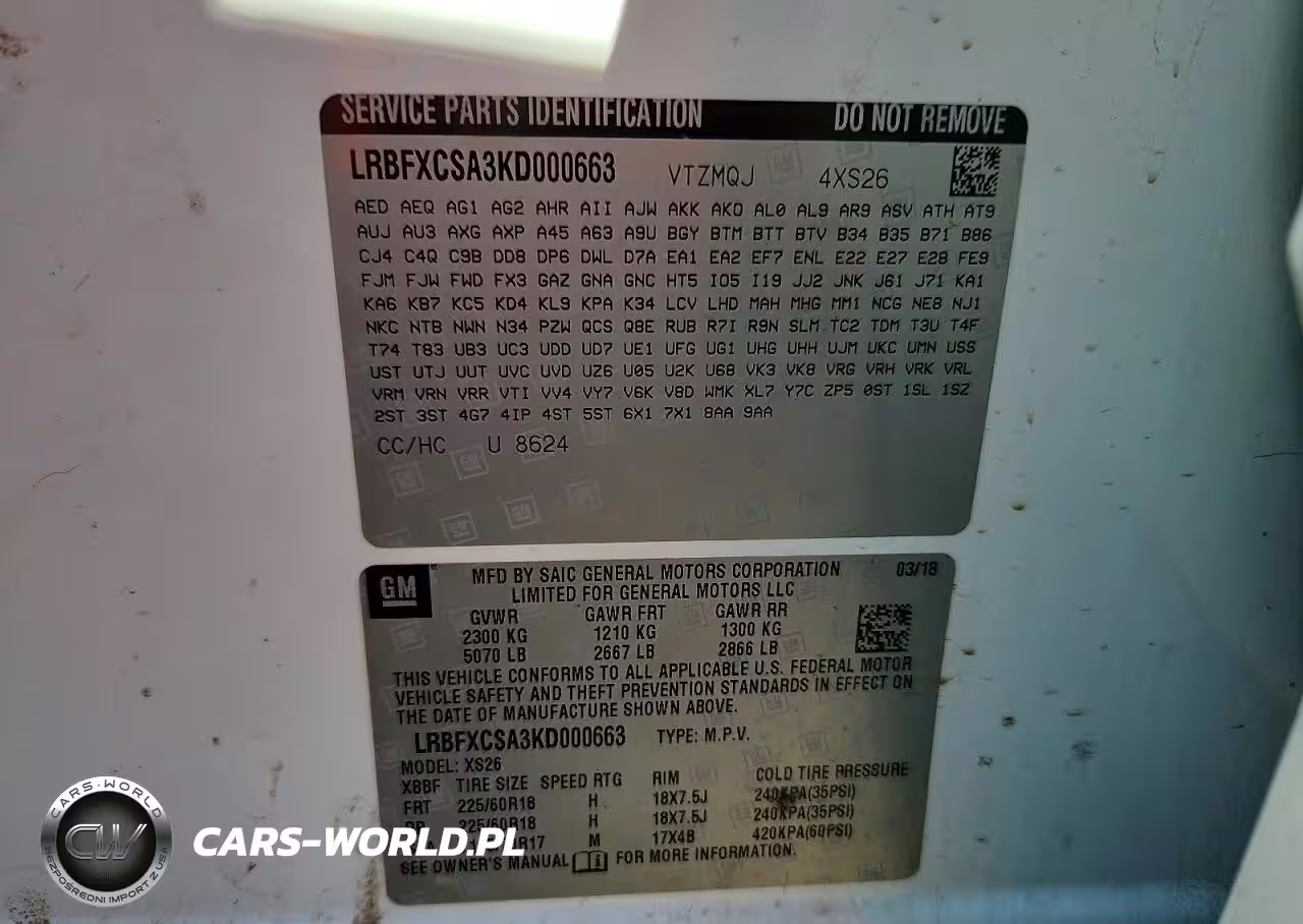 Copart Nr: C-73804045 VIN: LRBFXCSA3KD000663 Port: Houston, TX