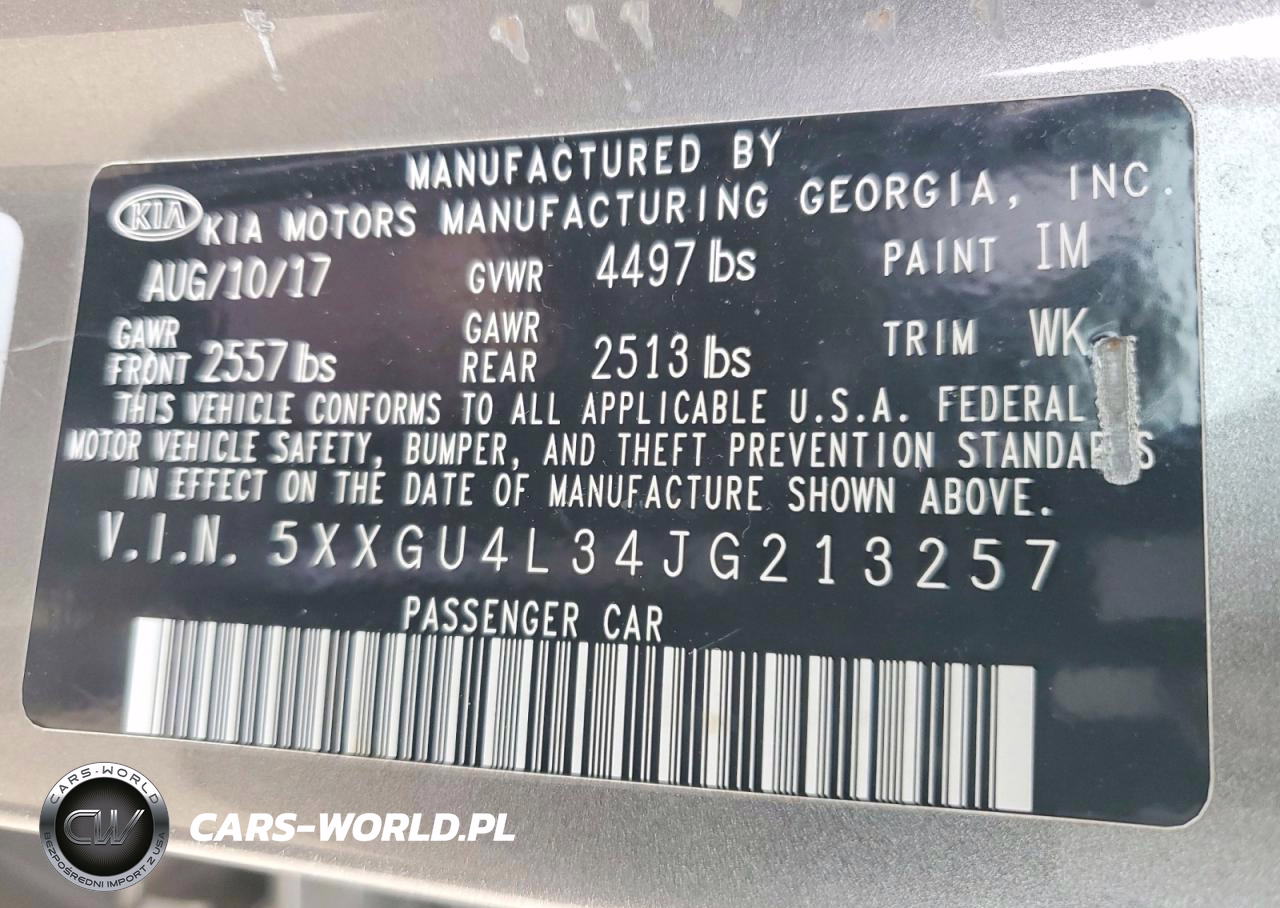 Copart Nr: C-73884975 VIN: 5XXGU4L34JG213257 Port: Elizabeth, NJ