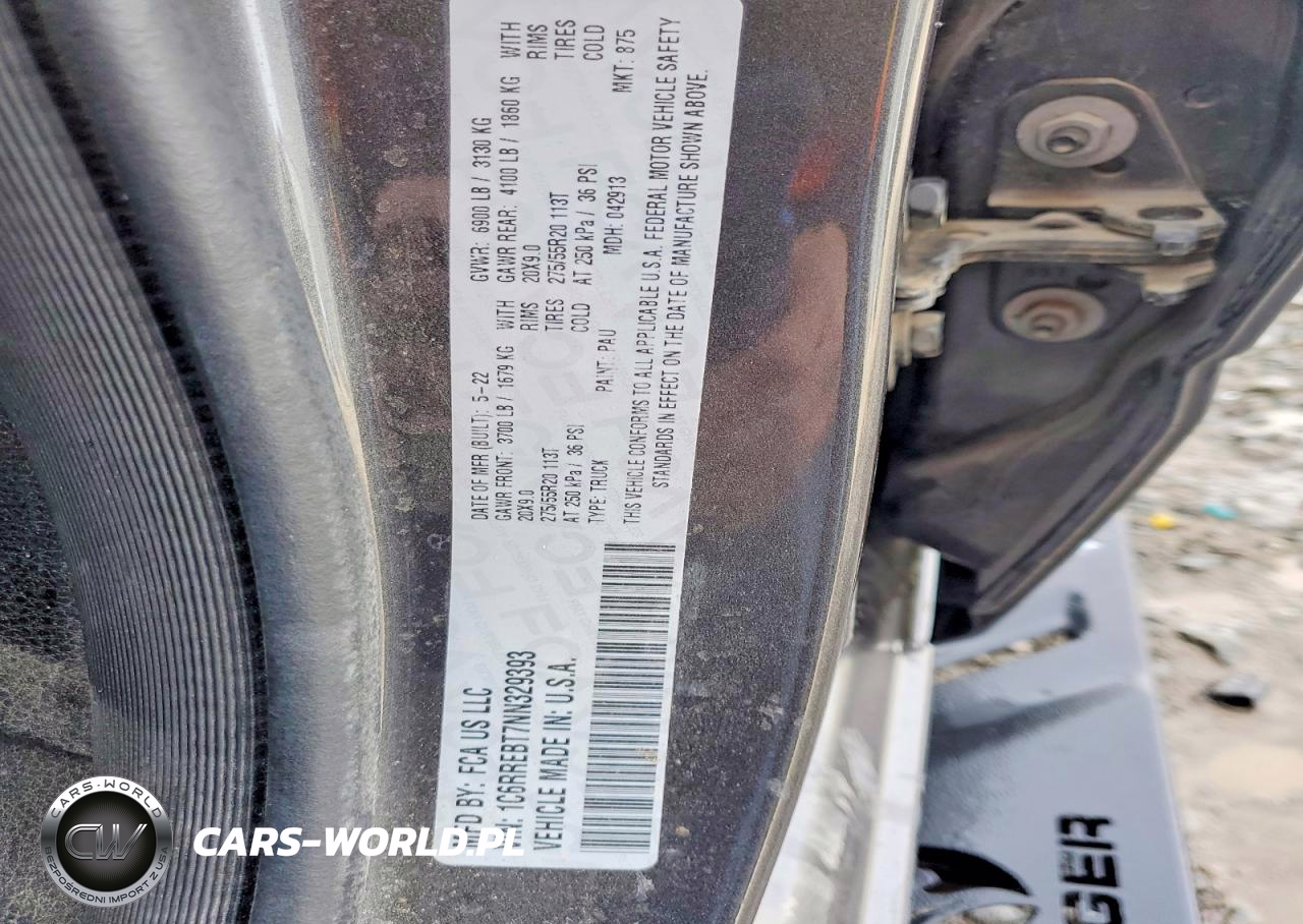 Copart Nr: C-73922835 VIN: 1C6RREBT7NN329393 Port: Los Angeles, CA