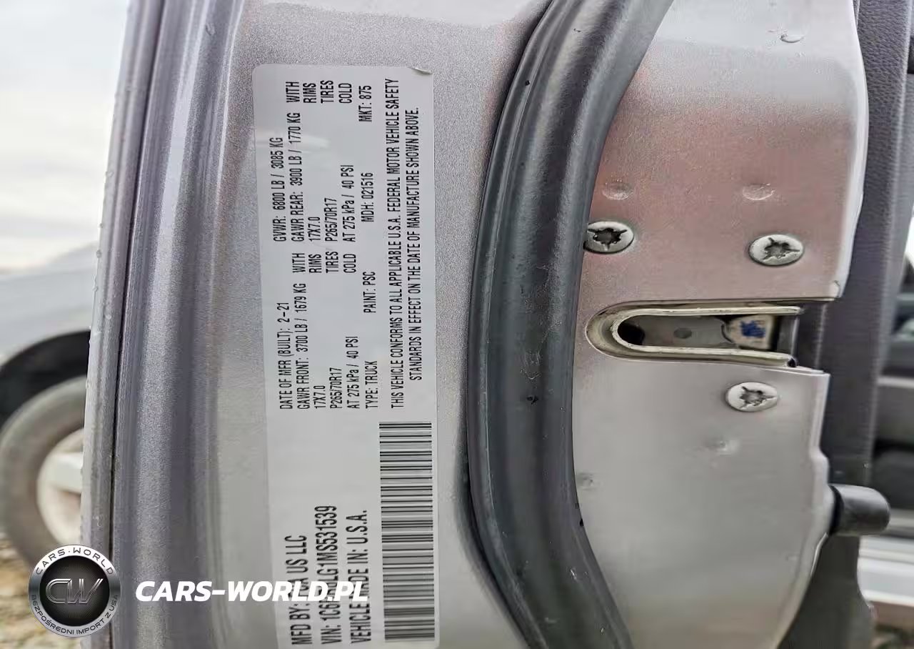 Copart Nr: C-73968095 VIN: 1C6RR6LG1MS531539 Port: Savannah, GA