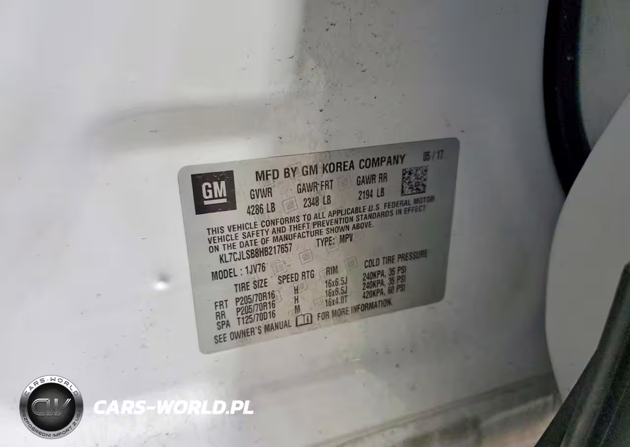 Copart Nr: C-73972585 VIN: KL7CJLSB8HB217657 Port: Indianapolis, IN