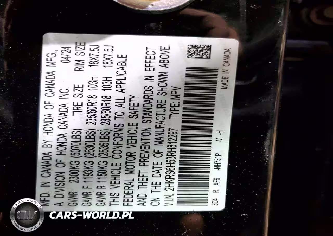 Copart Nr: C-73992505 VIN: 2HKRS6H53RH812297 Port: Elizabeth, NJ