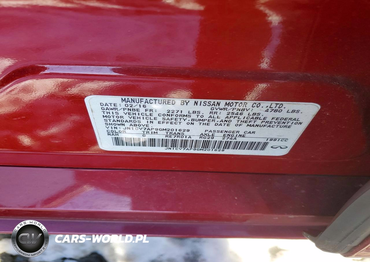 Copart Nr: C-74073385 VIN: JN1CV7AP9GM201629 Port: Elizabeth, NJ