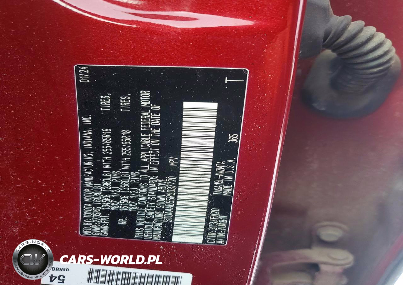 Copart Nr: C-74075585 VIN: 5TDAAAB55RS037720 Port: Indianapolis, IN
