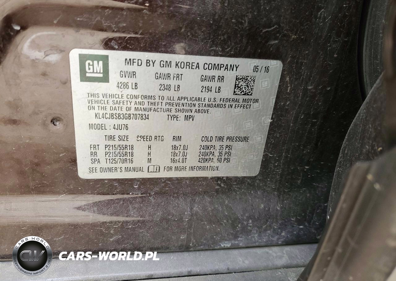 Copart Nr: C-74125435 VIN: KL4CJBSB3GB707834 Port: Houston, TX