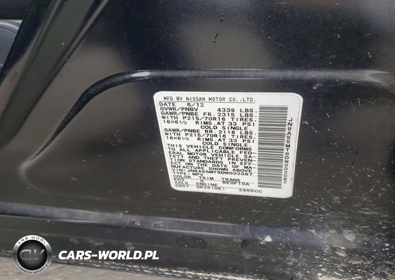 Copart Nr: C-74127915 VIN: JN8AS5MT8DW002067 Port: Savannah, GA