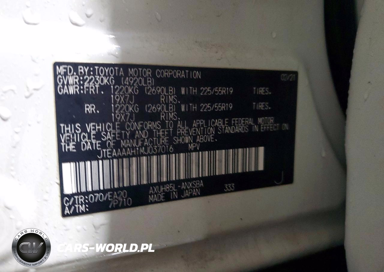 Copart Nr: C-74204585 VIN: JTEAAAAH1MJ037016 Port: Elizabeth, NJ