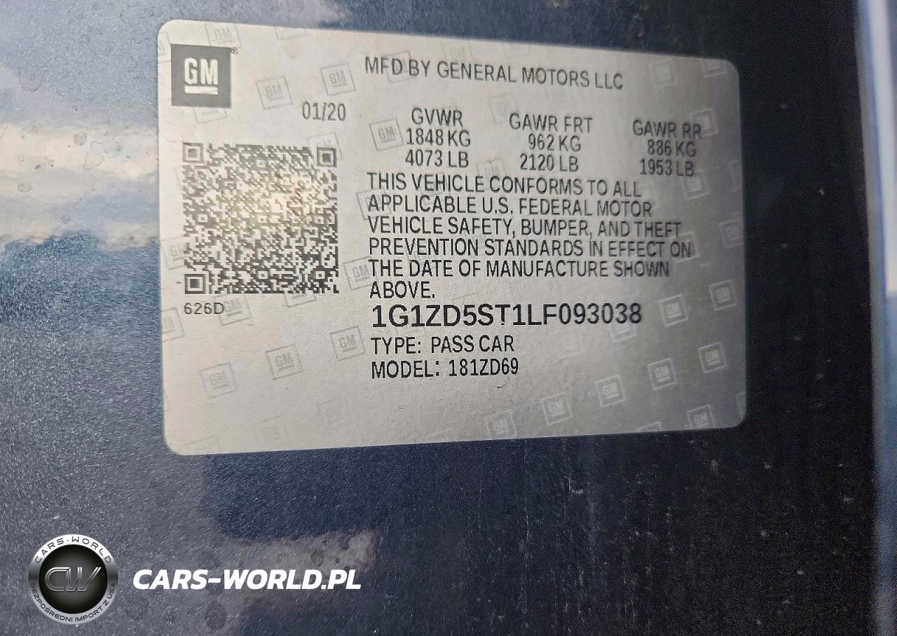 Copart Nr: C-74224395 VIN: 1G1ZD5ST1LF093038 Port: Houston, TX