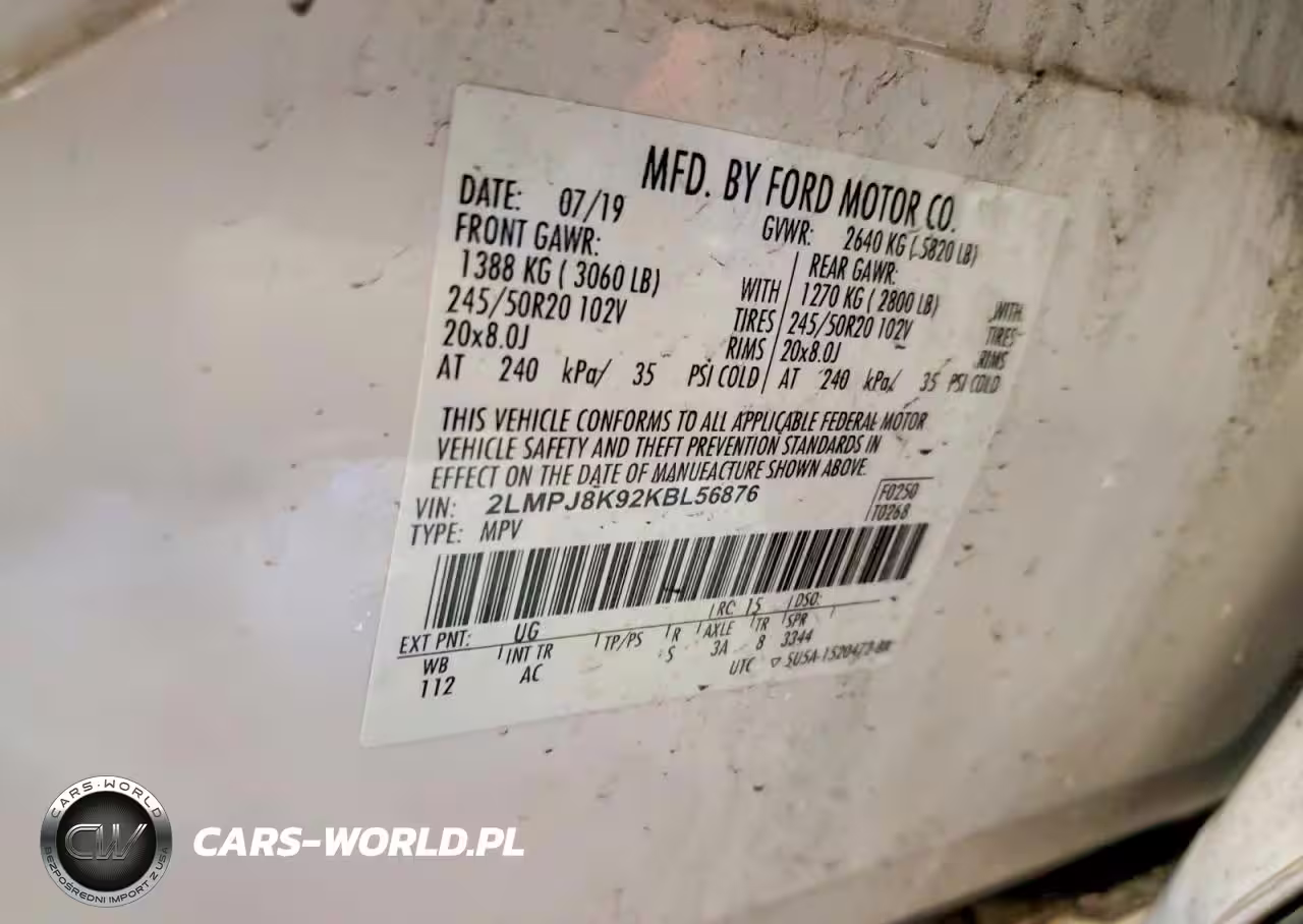 Copart Nr: C-74257795 VIN: 2LMPJ8K92KBL56876 Port: Elizabeth, NJ