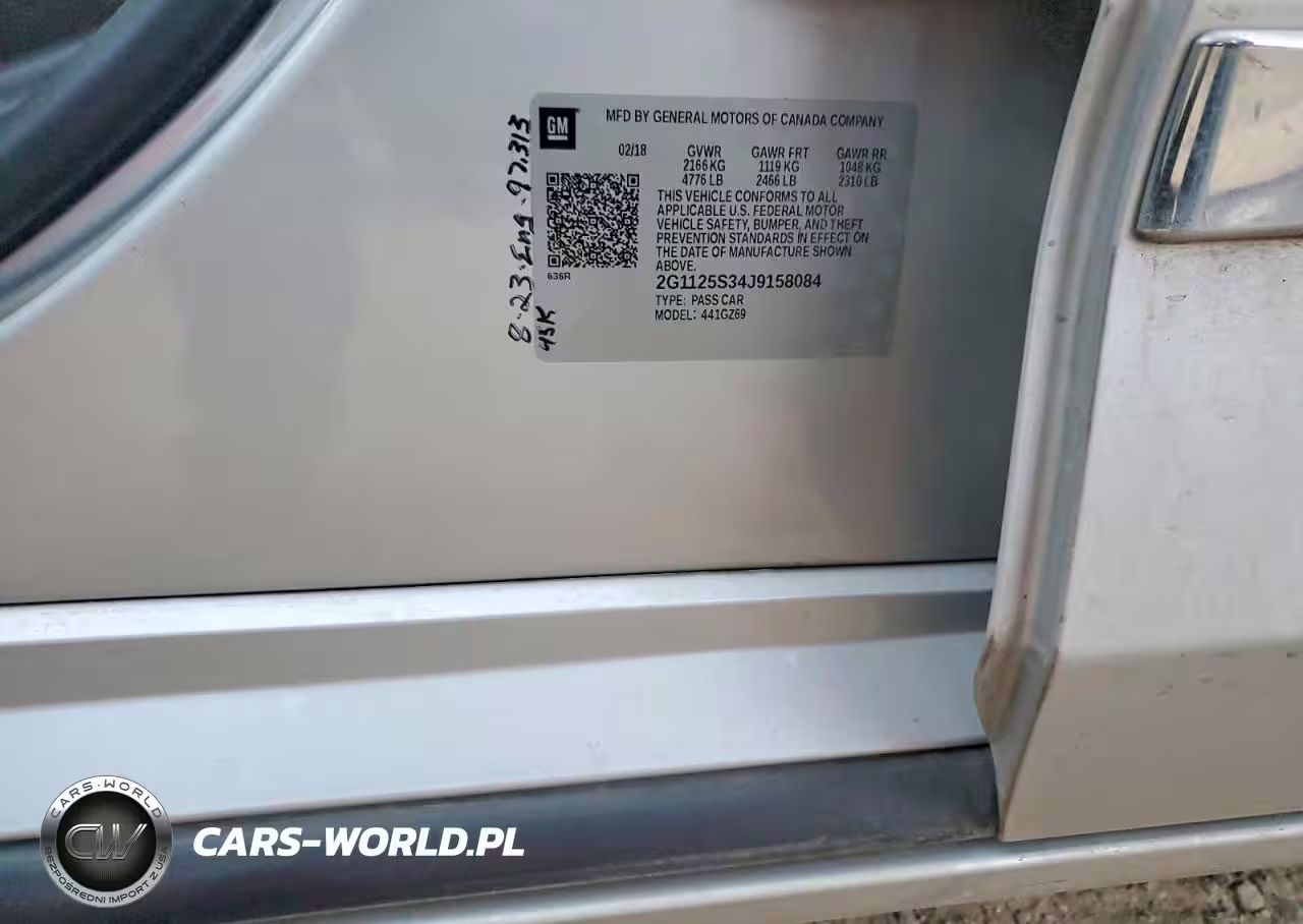 Copart Nr: C-74280775 VIN: 2G1125S34J9158084 Port: Indianapolis, IN