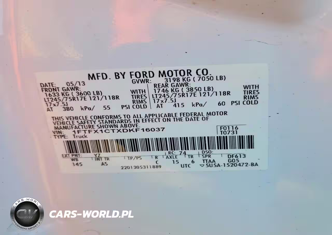 Copart Nr: C-74292695 VIN: 1FTFX1CTXDKF16037 Port: Los Angeles, CA