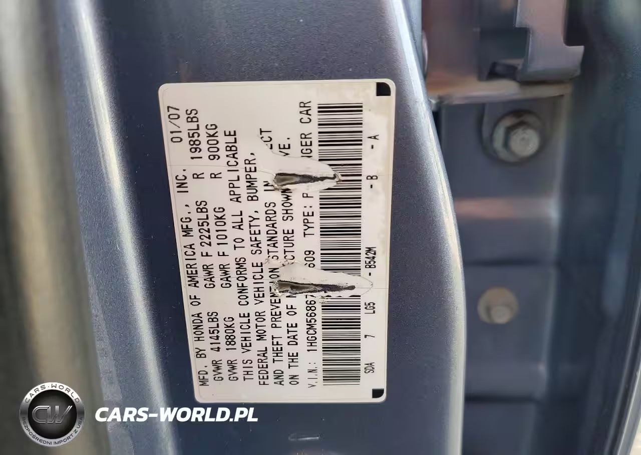 Copart Nr: C-74502935 VIN: 1HGCM56867A086609 Port: Los Angeles, CA