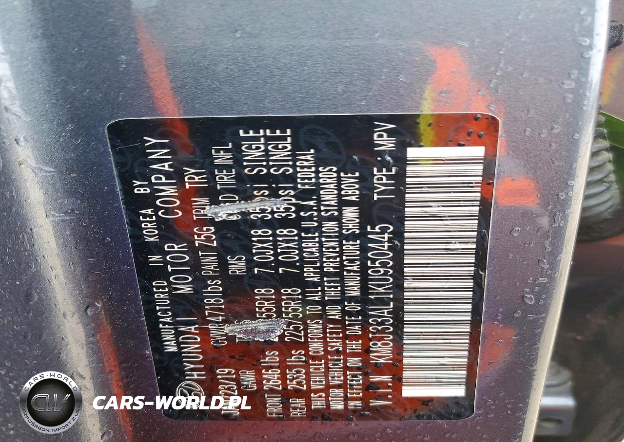 Copart Nr: C-74510225 VIN: KM8J33AL1KU950445 Port: Savannah, GA
