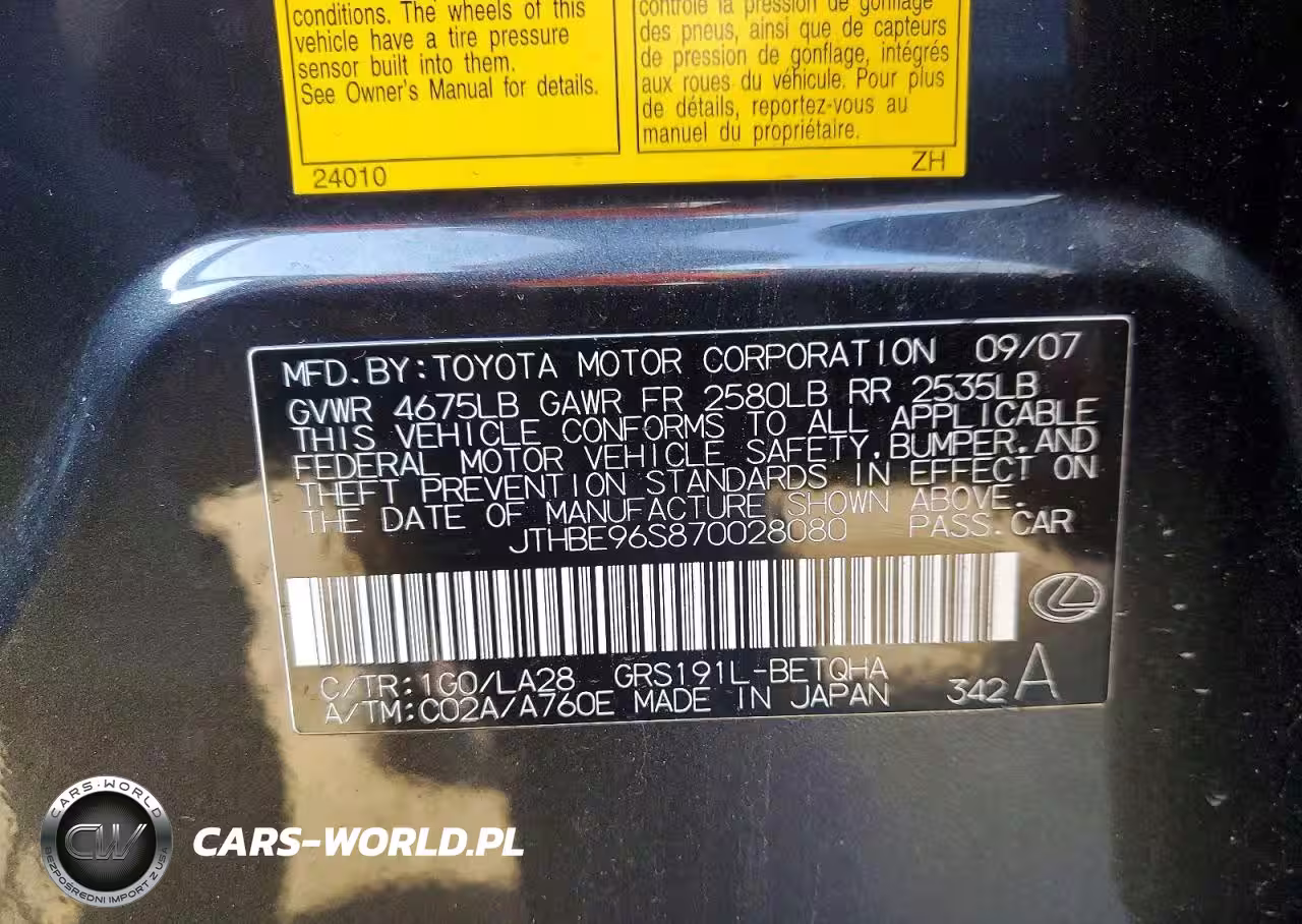 Copart Nr: C-74578515 VIN: JTHBE96S870028080 Port: Los Angeles, CA