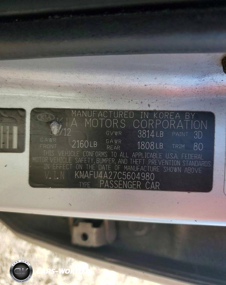 Copart Nr: C-74596165 VIN: KNAFU4A27C5604980 Port: Savannah, GA