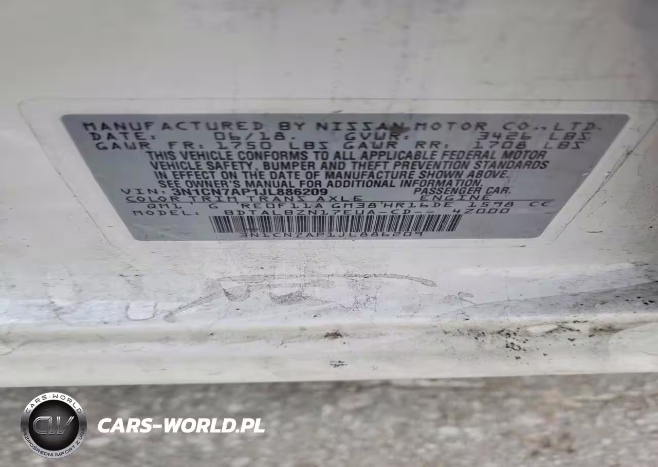 Copart Nr: C-74606395 VIN: 3N1CN7AP1JL886209 Port: Savannah, GA