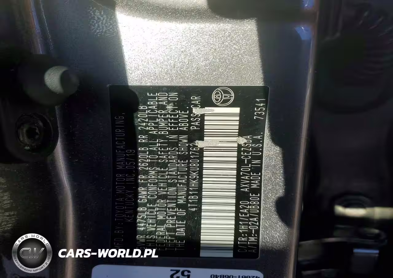 Copart Nr: C-74618165 VIN: 4T1B11HK9KU801762 Port: Elizabeth, NJ