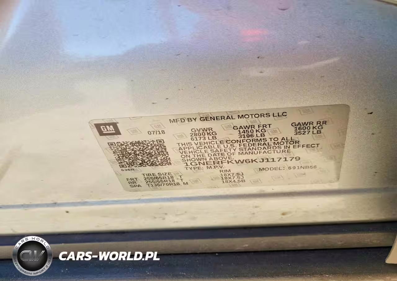Copart Nr: C-74628745 VIN: 1GNERFKW6KJ117179 Port: Savannah, GA