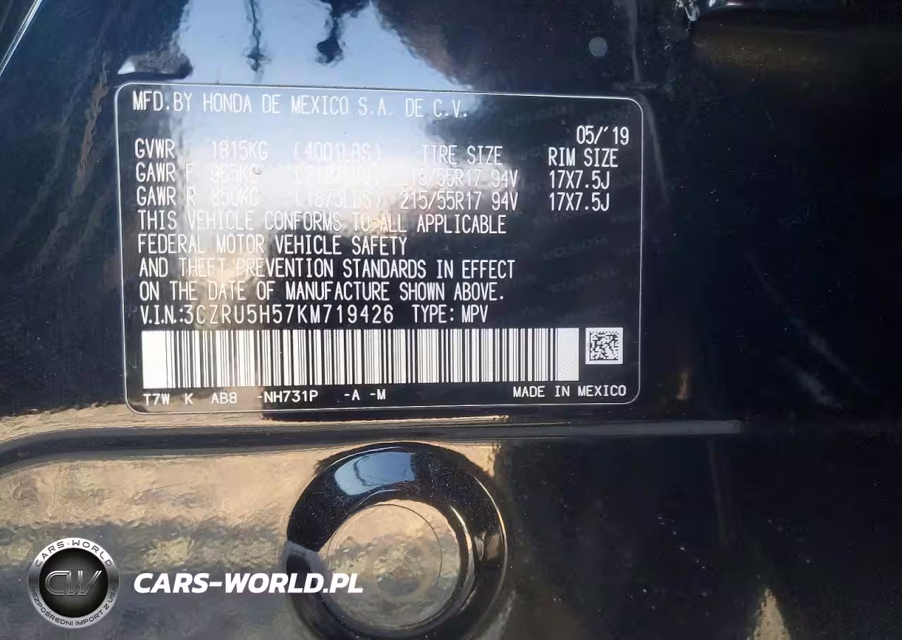 Copart Nr: C-74652125 VIN: 3CZRU5H57KM719426 Port: Los Angeles, CA