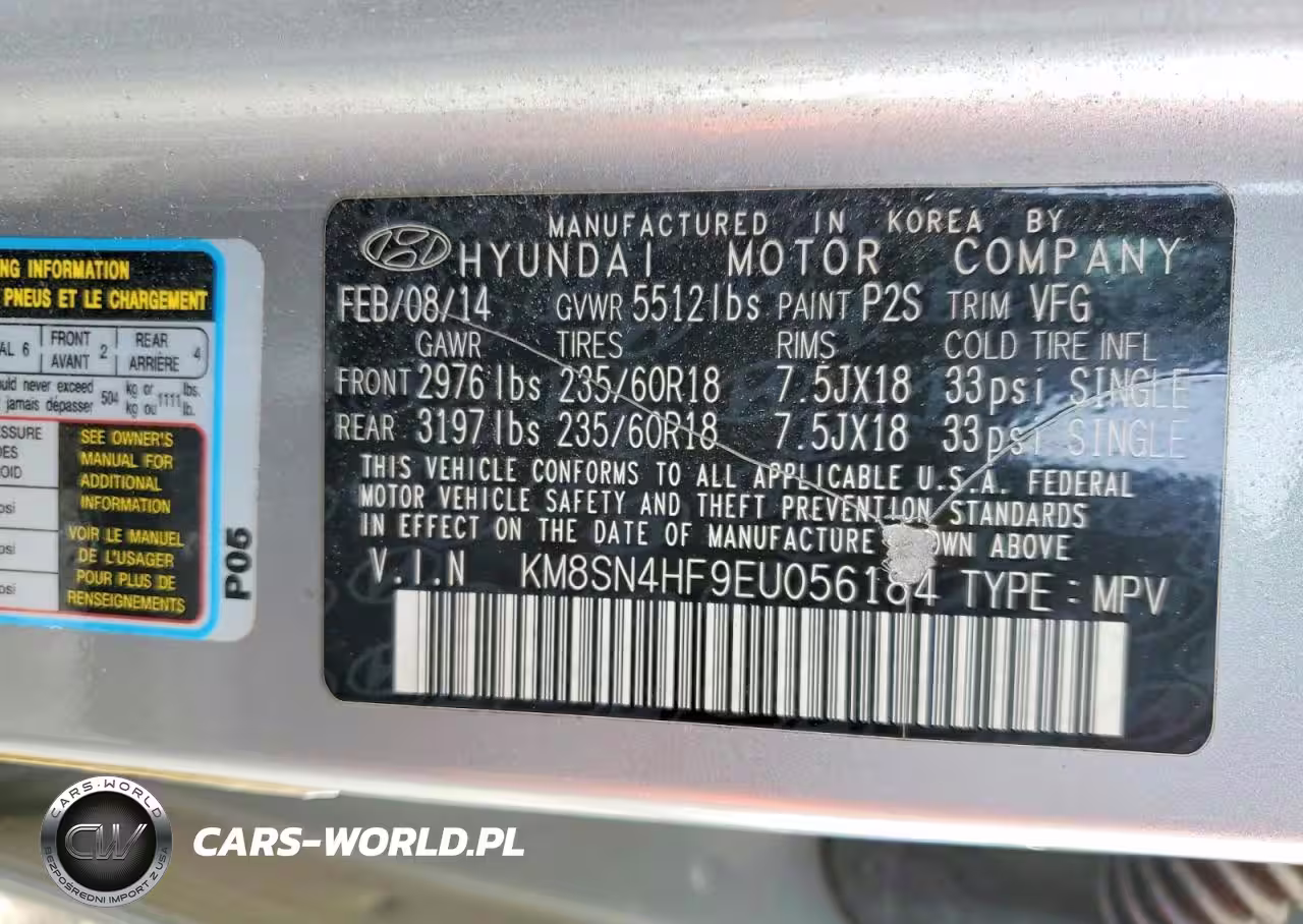 Copart Nr: C-74671395 VIN: KM8SN4HF9EU056184 Port: Savannah, GA