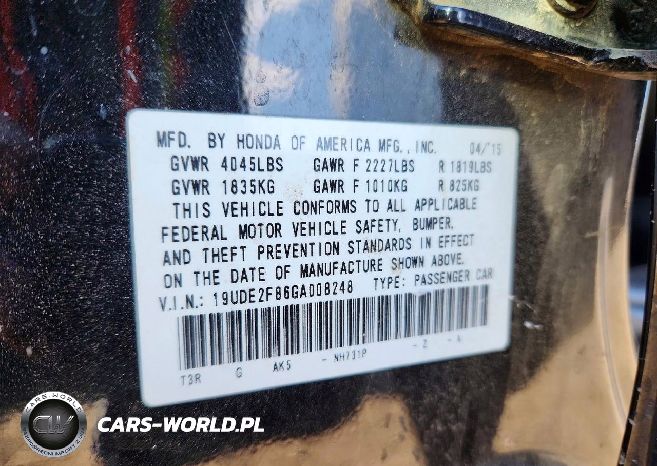 Copart Nr: C-74695335 VIN: 19UDE2F86GA008248 Port: Los Angeles, CA