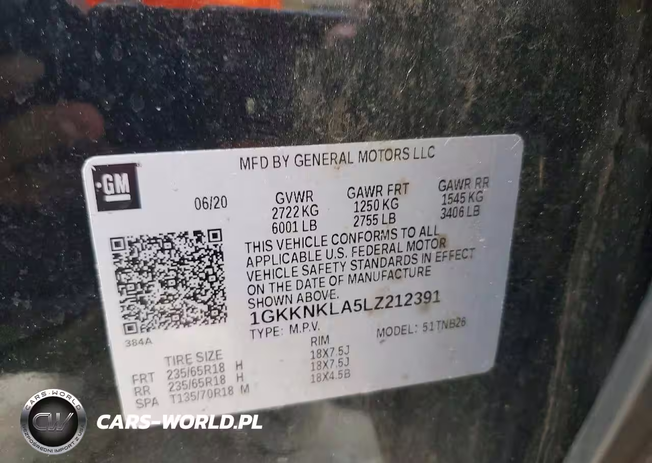 Copart Nr: C-74757375 VIN: 1GKKNKLA5LZ212391 Port: Savannah, GA