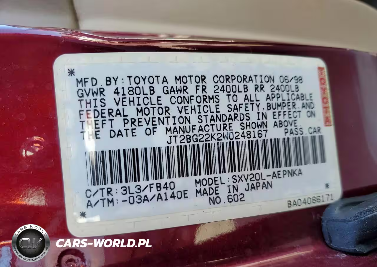 Copart Nr: C-74856375 VIN: JT2BG22K2W0248167 Port: Los Angeles, CA