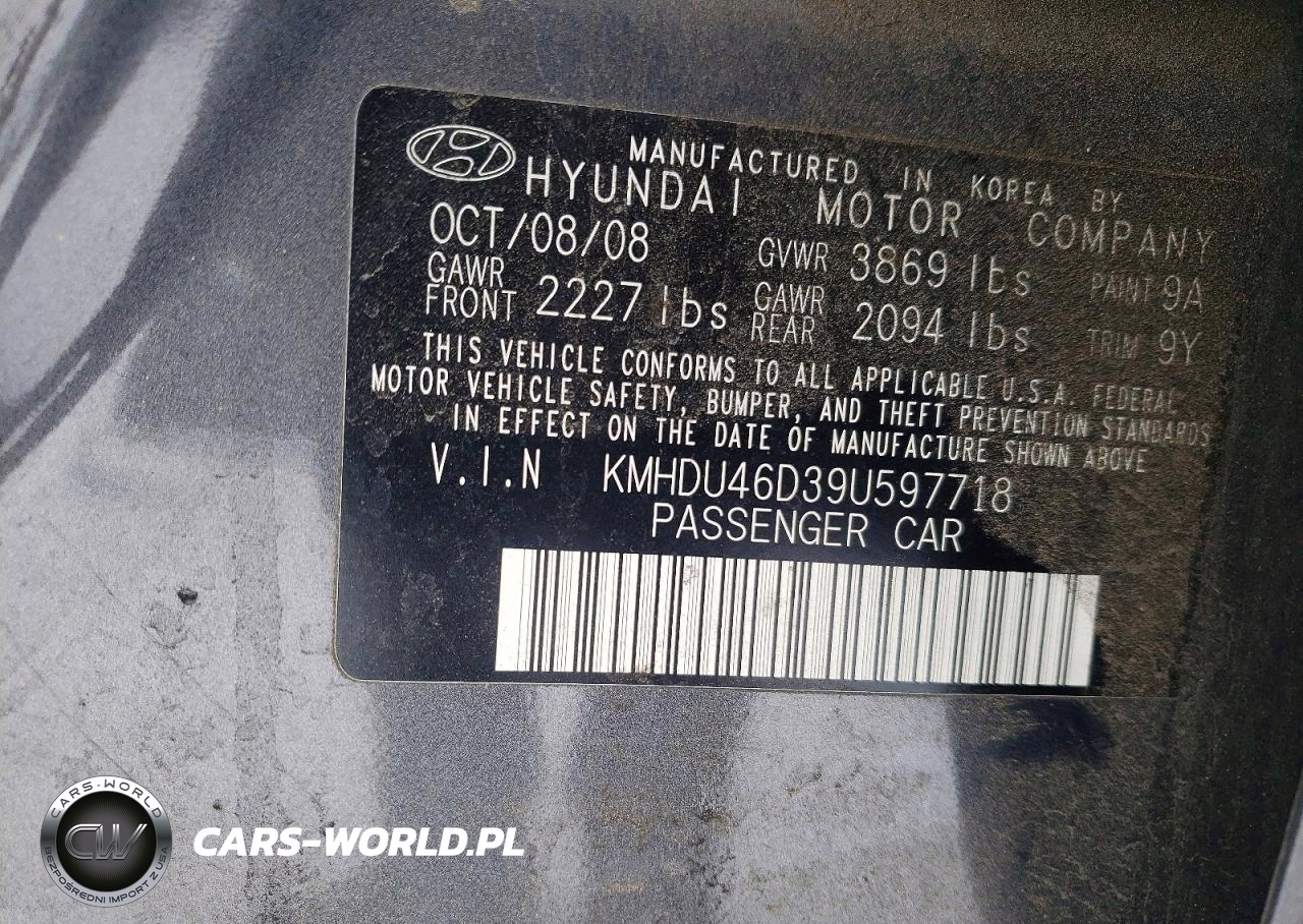 Copart Nr: C-74860725 VIN: KMHDU46D39U597718 Port: Elizabeth, NJ