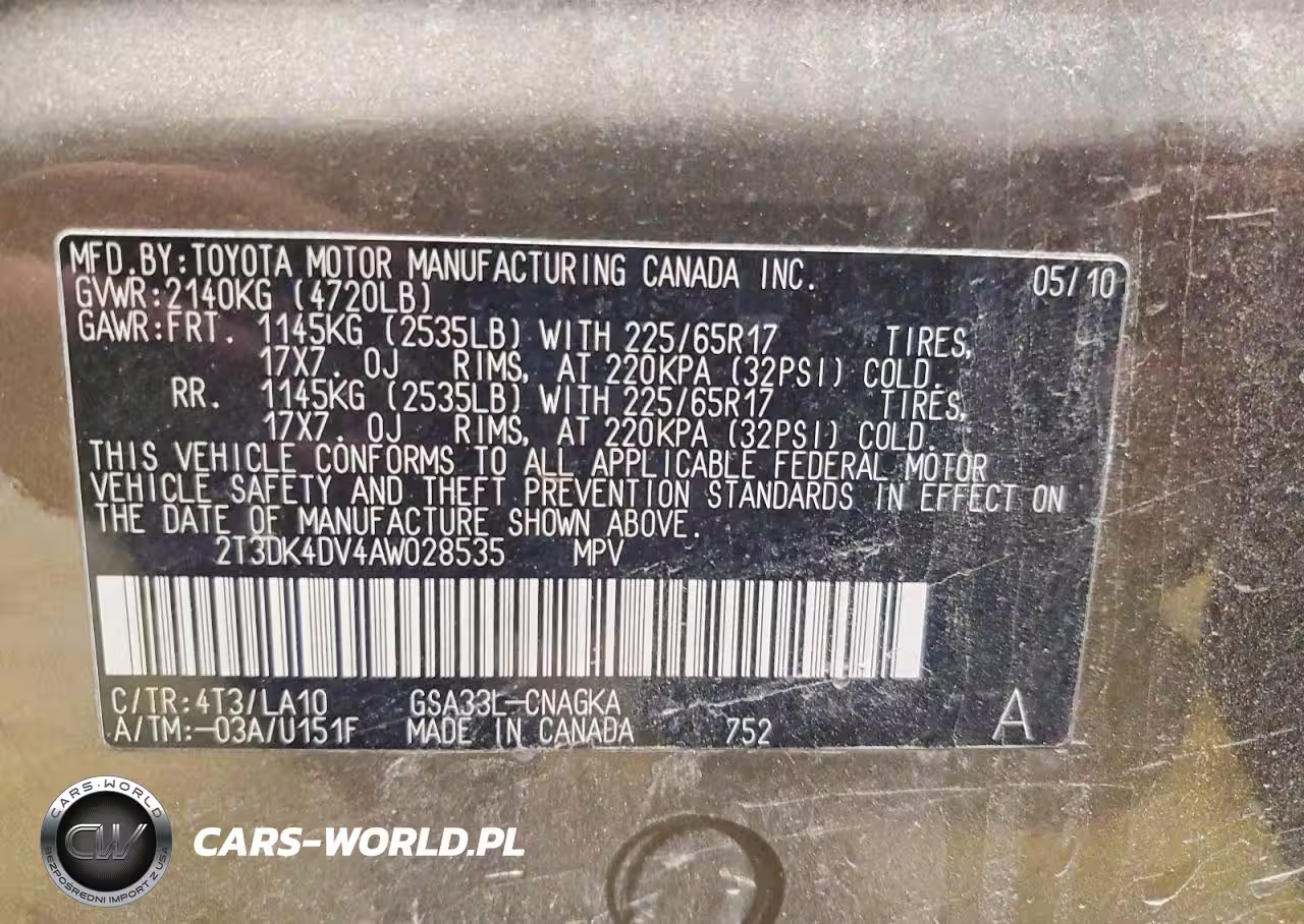 Copart Nr: C-74862735 VIN: 2T3DK4DV4AW028535 Port: Indianapolis, IN