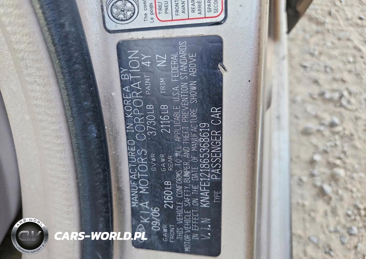 Copart Nr: C-74937035 VIN: KNAFE121865368619 Port: Indianapolis, IN