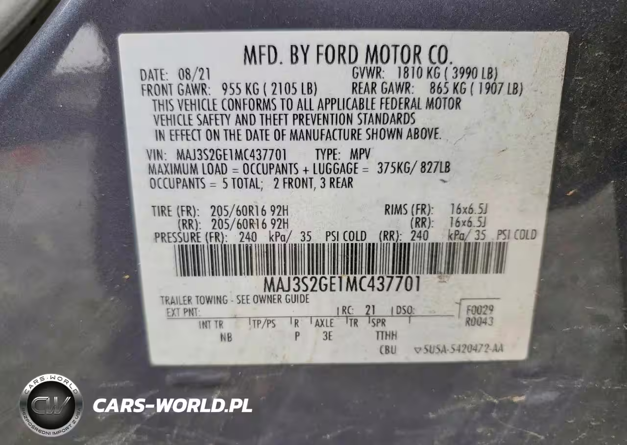 Copart Nr: C-74941955 VIN: MAJ3S2GE1MC437701 Port: Savannah, GA