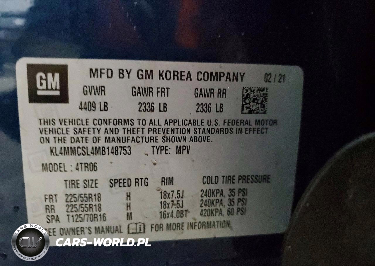 Copart Nr: C-74996445 VIN: KL4MMCSL4MB148753 Port: Elizabeth, NJ