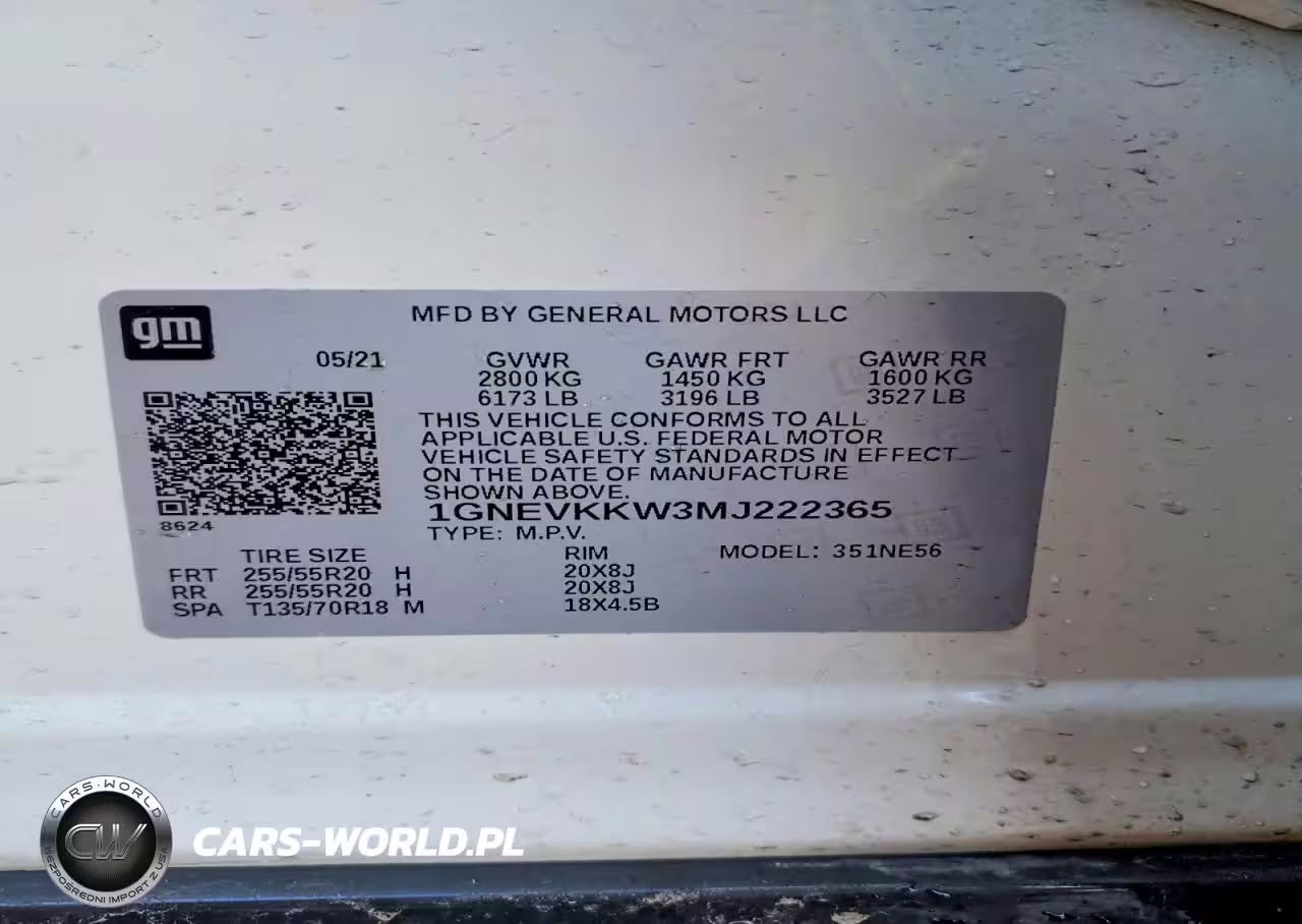 Copart Nr: C-74998675 VIN: 1GNEVKKW3MJ222365 Port: Indianapolis, IN