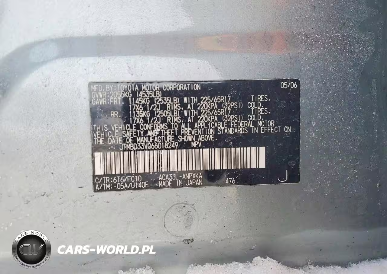 Copart Nr: C-75007065 VIN: JTMBD33V066018249 Port: Elizabeth, NJ