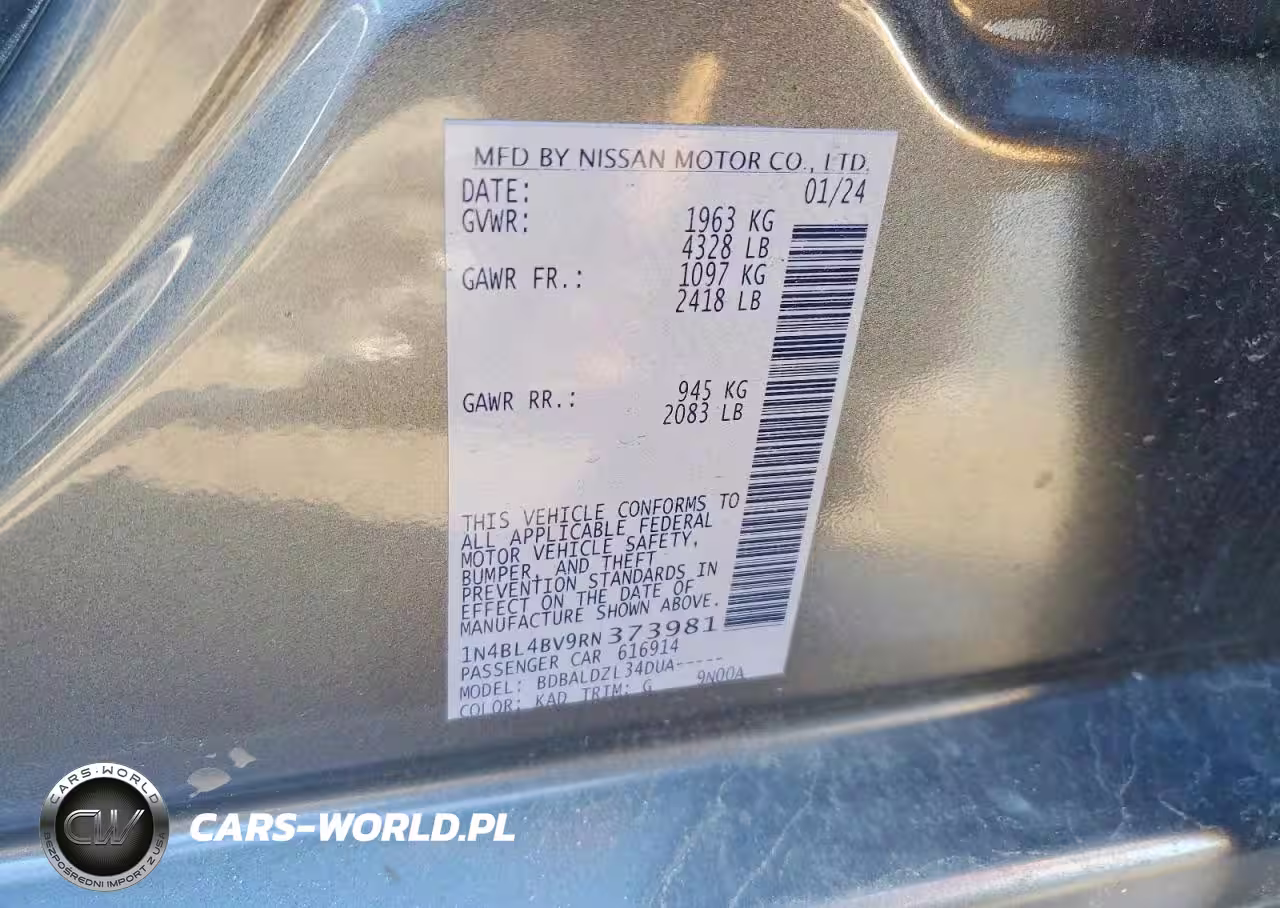Copart Nr: C-75027415 VIN: 1N4BL4BV9RN373981 Port: Elizabeth, NJ