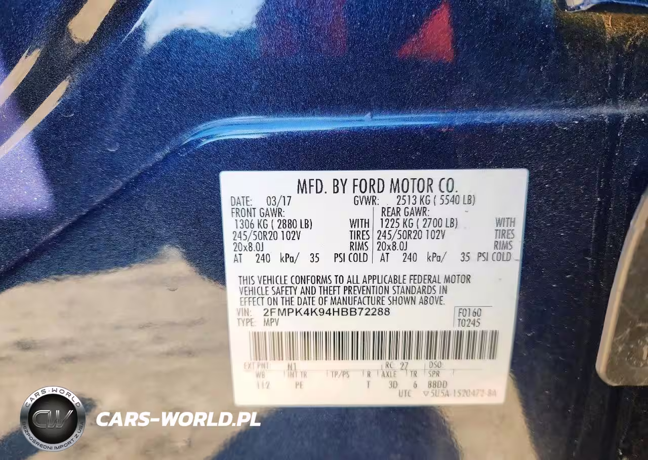Copart Nr: C-75028915 VIN: 2FMPK4K94HBB72288 Port: Elizabeth, NJ