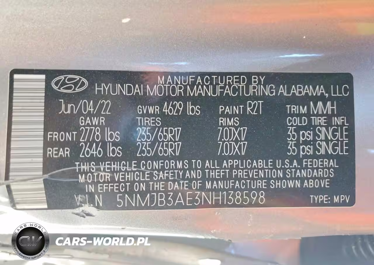 Copart Nr: C-75066355 VIN: 5NMJB3AE3NH138598 Port: Savannah, GA