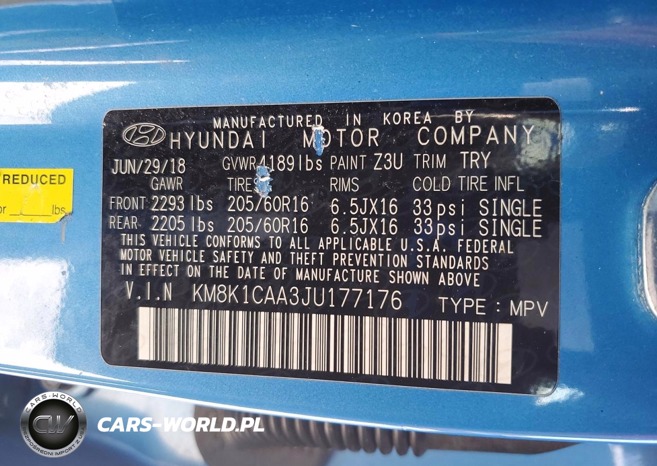 Copart Nr: C-75270925 VIN: KM8K1CAA3JU177176 Port: Elizabeth, NJ