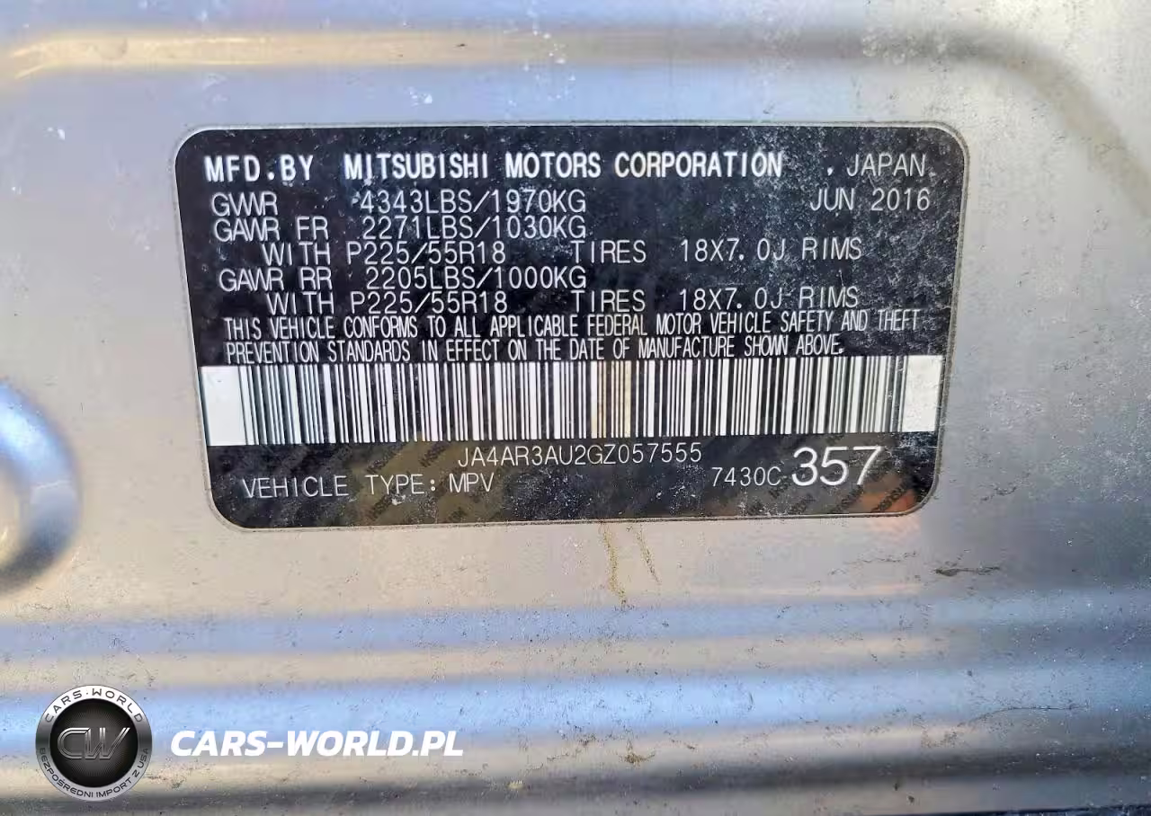 Copart Nr: C-75283915 VIN: JA4AR3AU2GZ057555 Port: Elizabeth, NJ