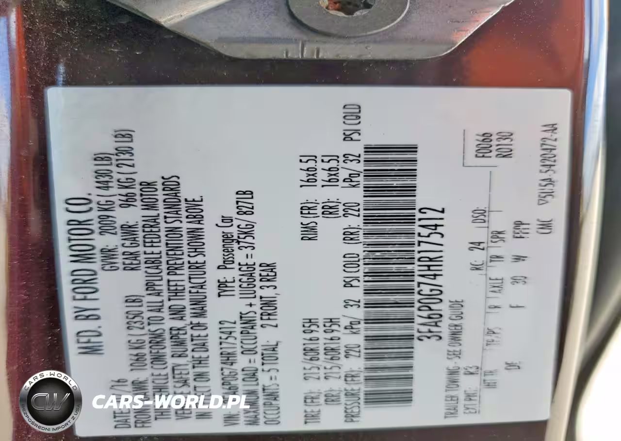 Copart Nr: C-75288285 VIN: 3FA6P0G74HR175412 Port: Houston, TX