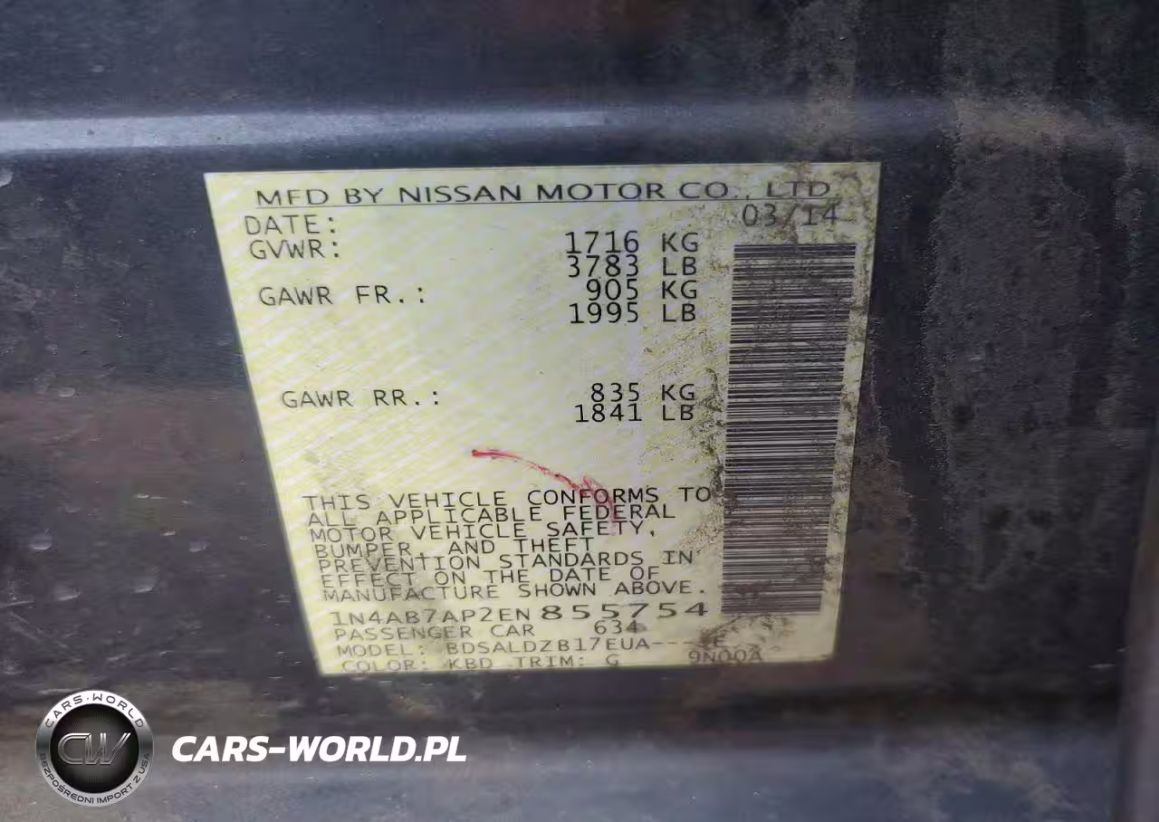 Copart Nr: C-75316545 VIN: 1N4AB7AP2EN855754 Port: Los Angeles, CA