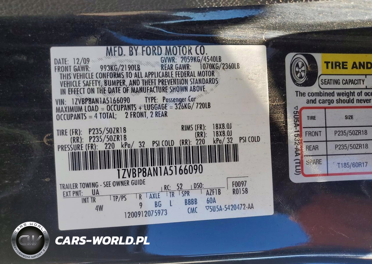 Copart Nr: C-75413135 VIN: 1ZVBP8AN1A5166090 Port: Houston, TX