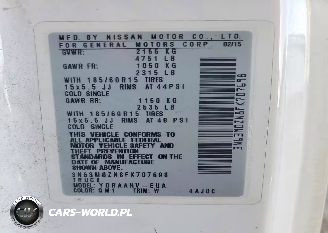 Copart Nr: C-75443605 VIN: 3N63M0ZN8FK707698 Port: Los Angeles, CA
