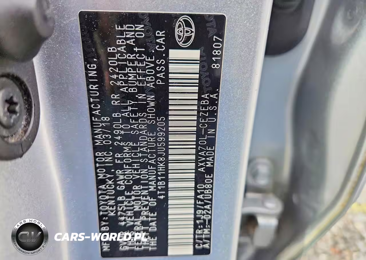 Copart Nr: C-75445235 VIN: 4T1B11HK8JU599205 Port: Savannah, GA