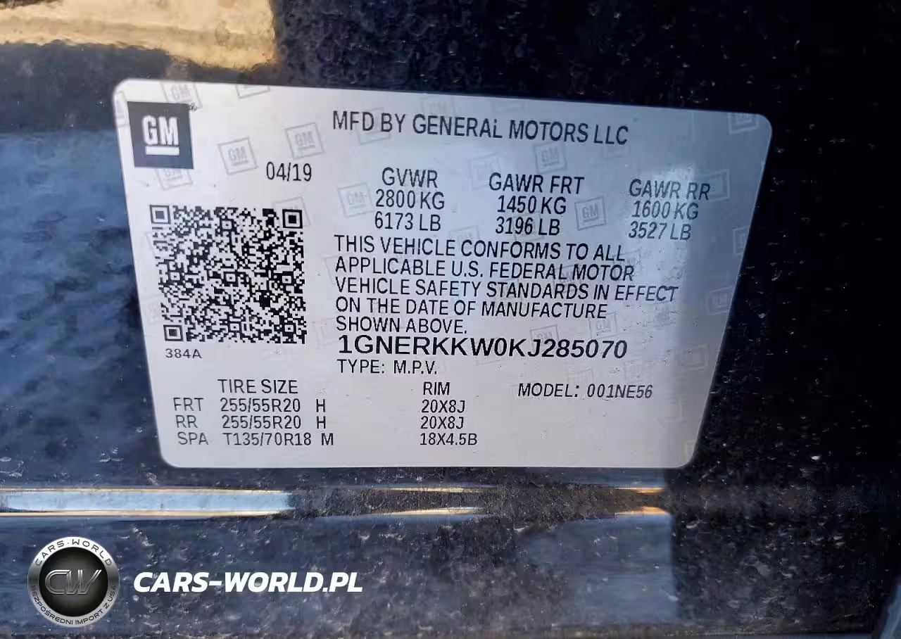 Copart Nr: C-75539605 VIN: 1GNERKKW0KJ285070 Port: Savannah, GA