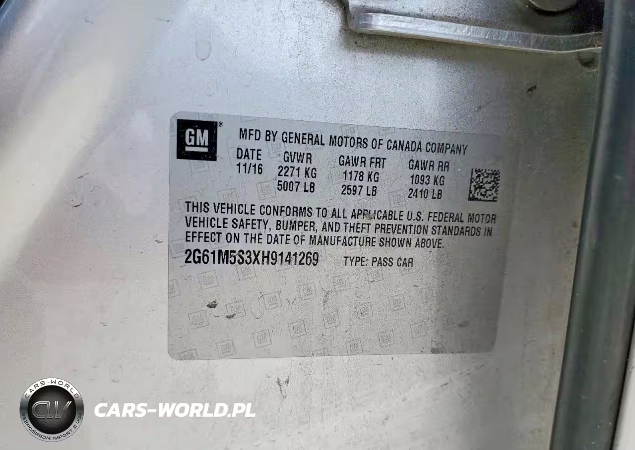 Copart Nr: C-75661385 VIN: 2G61M5S3XH9141269 Port: Houston, TX
