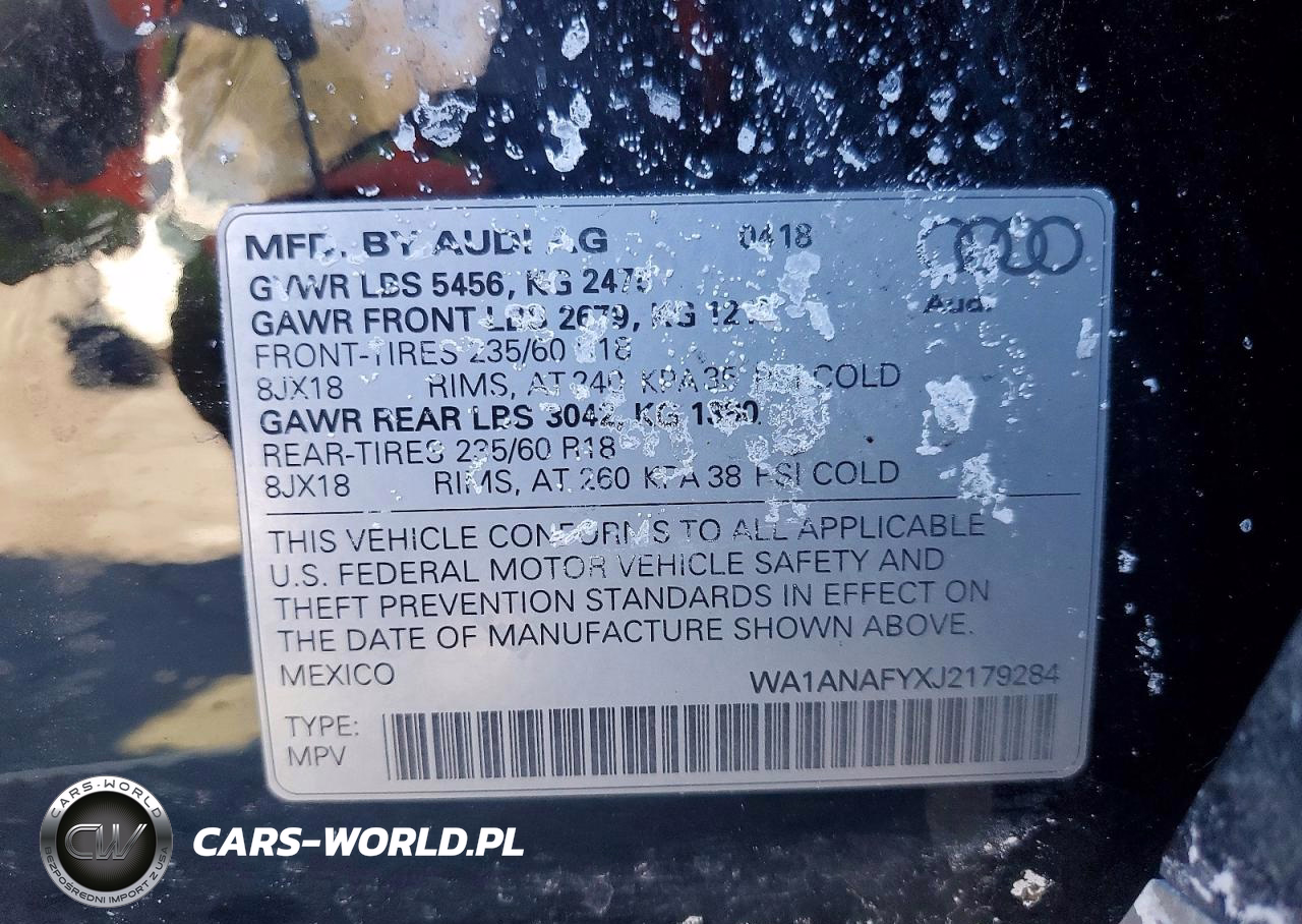Copart Nr: C-75685945 VIN: WA1ANAFYXJ2179284 Port: Elizabeth, NJ