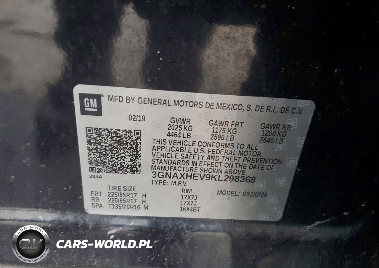 Copart Nr: C-75687845 VIN: 3GNAXHEV9KL298368 Port: Savannah, GA