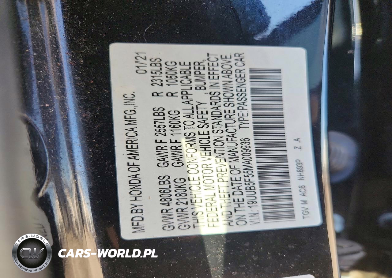 Copart Nr: C-75691275 VIN: 19UUB5F55MA009936 Port: Savannah, GA